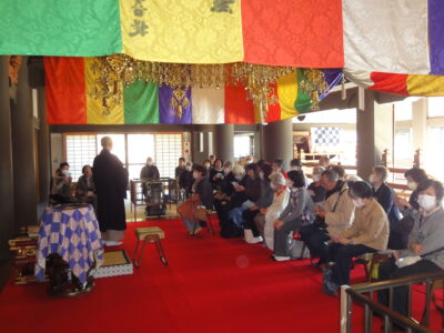 祥雲寺本堂にて毎月第四月曜朝6時半から行っている坐禅会です。